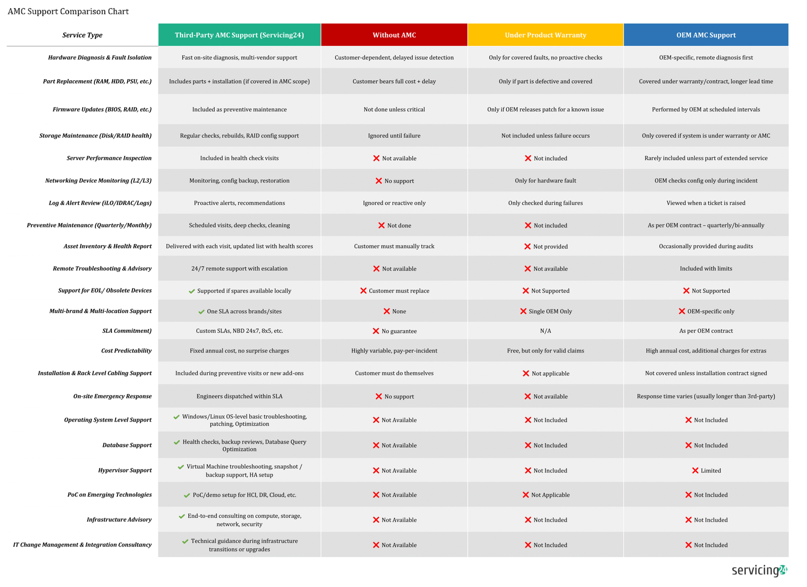 Service Type Third-Party AMC Support (Servicing24) Without AMC Under Product Warranty OEM AMC Support